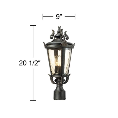 Inspired by the romance and magic of the French port city of Marseille, this outdoor post light features bold Mediterranean styling. In a bronze finish with champagne hammered glass, it offers a warm and lovely look for your yard or garden space. Ornate scroll and acanthus leaf details complete this rich traditional design.