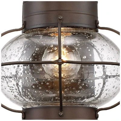 The use of an oil-rubbed bronze finish helps to distinguish the elegant design of this Galt motion sensor lantern outdoor wall light by John Timberland®. The seedy glass reinforces the detailed look and feel of this light. The motion sensor is a great feature to enhance the versatility when used outside your home.