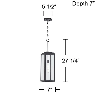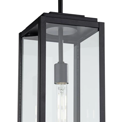 John Timberland Modern Outdoor Hanging Light Fixture Mystic Black 27 1/4″ Clear Glass Panel For Exterior Barn Deck House Porch Patio Outside Garage