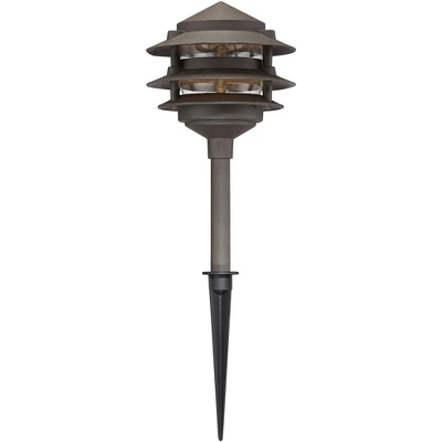 This complete landscape lighting set makes it easy to brighten outdoor spaces. It comes with six bronze LED pagoda path lights, two bronze LED spot lights for illuminating plantings or trees, one 45 watt transformer, and 50-feet of 12-gauge wiring cable. Installation is a simple DIY job: Connect the lights together with the included wire, connect to the transformer, then plug into an outdoor grounded outlet.