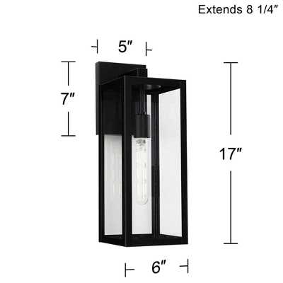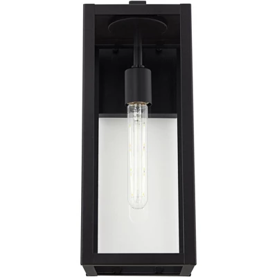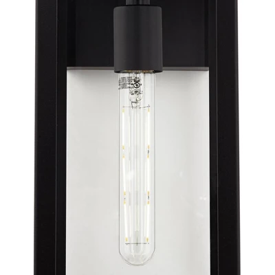 - Mystic black finish. Clear glass panels allow bulb to be seen. Vertical installation with bulb pointing down only.