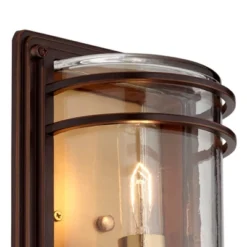 John Timberland Habitat Rustic Industrial Outdoor Wall Light Fixtures Set Of 2 Bronze Dusk To Dawn Motion Sensor 11 1/4″ Seedy Glass For Exterior