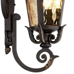 John Timberland Casa Marseille Rustic Outdoor Wall Light Fixture Veranda Bronze Ornate Scroll 36″ Champagne Hammered Glass For Post Exterior Barn Deck