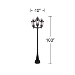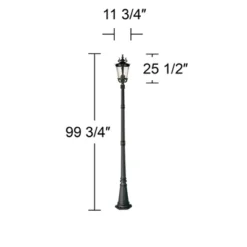 John Timberland Casa Marseille Vintage Outdoor Post Light Textured Black 3-Light Street Lantern 100″ Clear Hammered Glass For Exterior Light Barn Deck