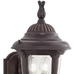 John Timberland Casa Seville Vintage Rustic Outdoor Wall Light Fixture Dark Walnut Scroll 23 3/4″ Champagne Hammered Glass For Post Exterior Barn Deck