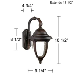 John Timberland Casa Seville Vintage Rustic Outdoor Wall Light Fixture Dark Walnut Scroll 18 1/2″ Champagne Hammered Glass For Post Exterior Barn Deck